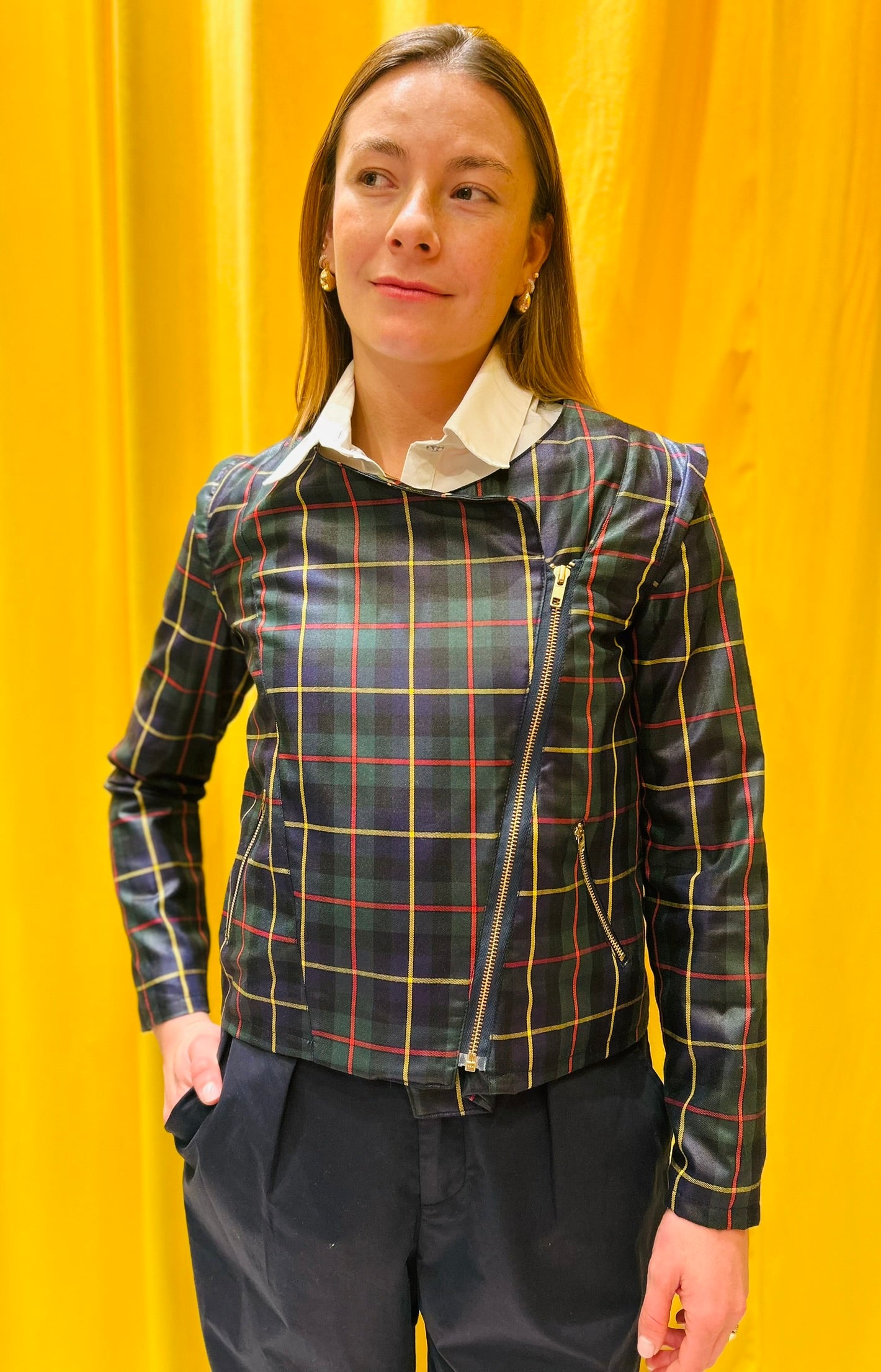 Rockey jacket, 100% cotton. Fitted jacket with zipper on the sleeve. Asymmetrical closure with metal zipper, and side pockets with zippers.